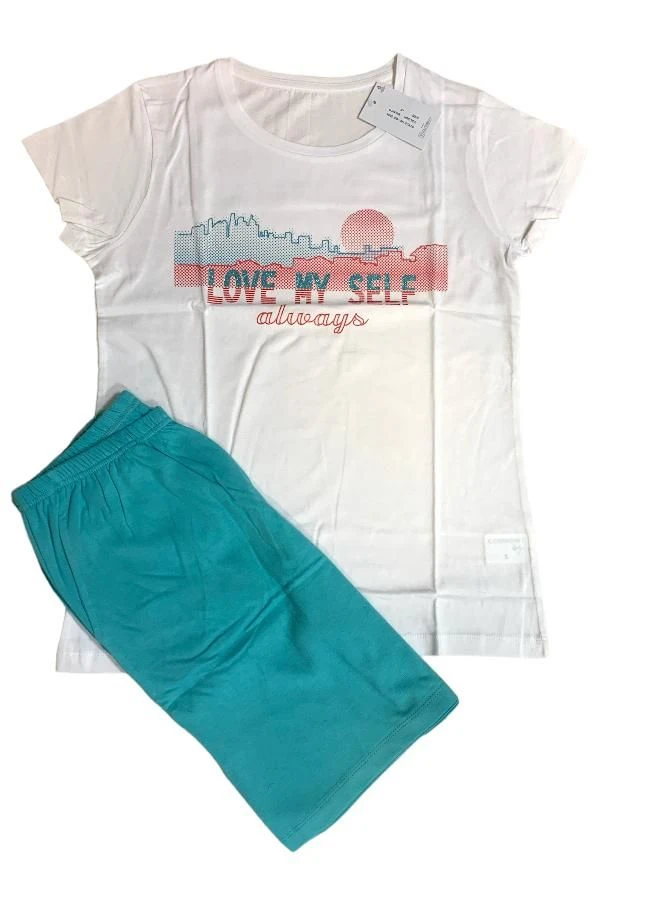 Completo Donna corto 100% cotone IL GRANCHIO lady 5051 Outlet con maglia girocollo mezza manica con stampa e pantalone corto con tasche sul davanti in morbido e fresco 100% cotone jersey