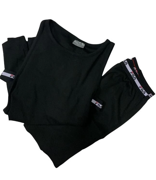 Bellissimo Completo Donna sport corto Fila 4089 Outlet canottiera spalla larga cotone a costine scollata laterale con elastico laterale e pantalone corto. Composizione 95% cotone 5% elastan