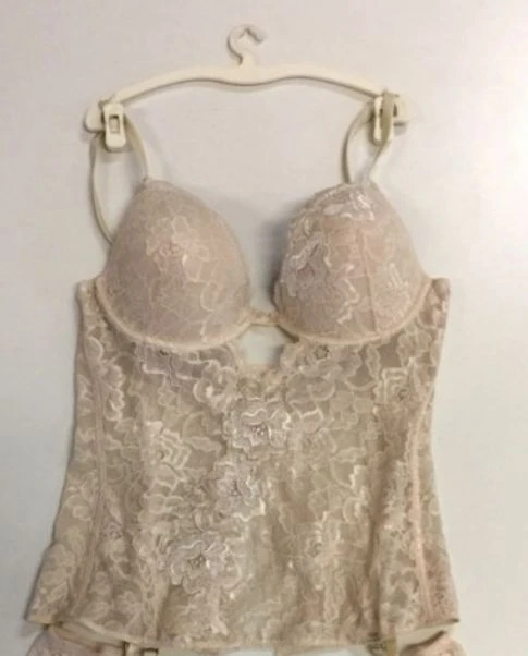 Guepire Lormar Recital composto da bustino guepiere tutto in pizzo elasticizato e ricamato con inserti in lurex con coppe push up invisibili e ganci sotto staccabili.