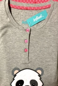 Pigiama Donna 100% cotone caldo Infiore 651988 Maglia serafino aperta quattro bottoni con applicazione davanti pantalone fantasia con bordo alle caviglie Composizione 100% cotone invernale pesante Disponibile nelle taglie 42/S 44/M 46/L 48/XL in Grigio e Giallo bambu