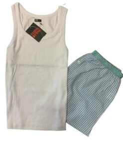 Pigiama Donna canottiera corto 100% cotone Taglia S Bianco pezzi unici campionario special price