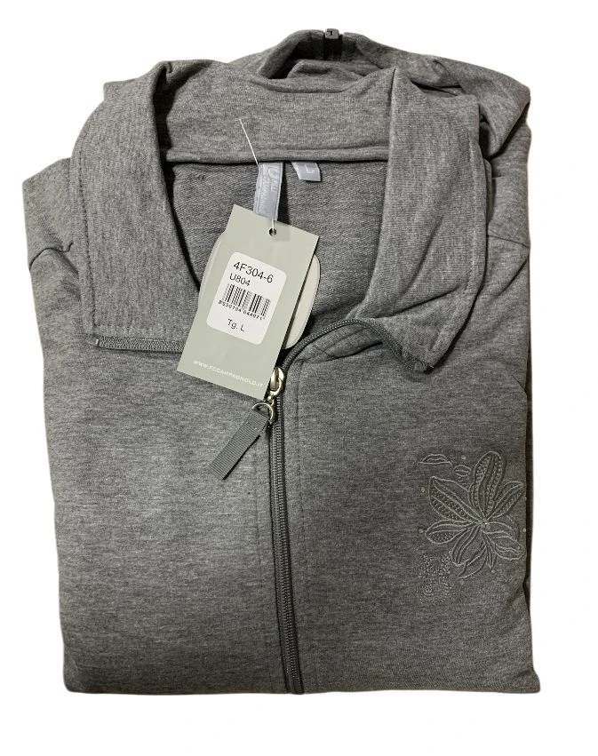 Tuta Donna cotone leggero garzato Campagnolo 304 Outlet giacca tutta aperta con zip e pantalone con tasche avanti orlato in fondo Blu 100% cotone Grigio 70%cotone 10%viscosa